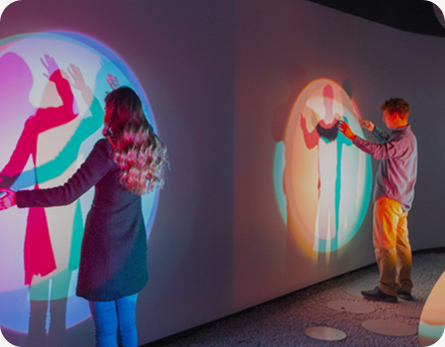 華竣將國際先進(jìn)的多媒體創(chuàng)意互動科技與硬件設(shè)備應(yīng)用于展館中如AR/VR/MR、機(jī)械藝術(shù)裝置、結(jié)構(gòu)投影等等,